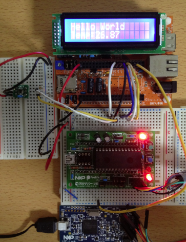 I2Cがp27, p28を使用するので、LCDの接続以下に変更します。 MyARM: StartBoard