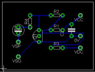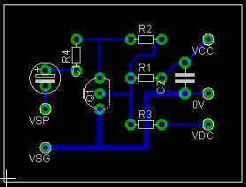 自動配線がいつも人間の考えているようなパターンを生成するとは限らない。 例えば、以下のような配線になった場合、VSGとOVをR3の間を通したいと考えているのに自動配線はおかしなパスを作成してしまう。